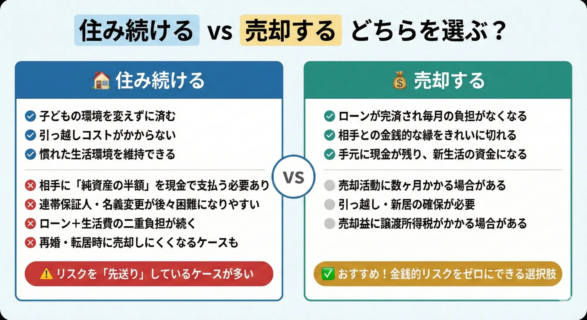離婚後も家に住み続けることを選ぶ場合、注意が必要です。